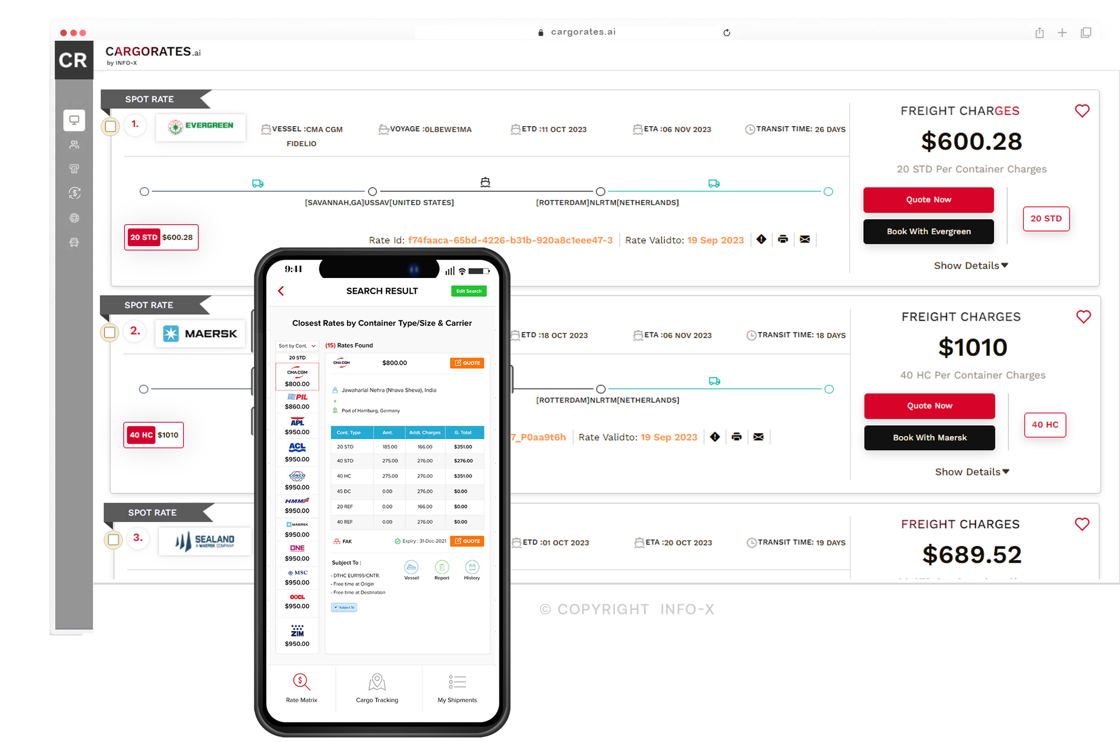 Experience instant access to real-time freight rates with a single click. Let CARGORATES.ai be your compass to a simpler, cost-effective solution